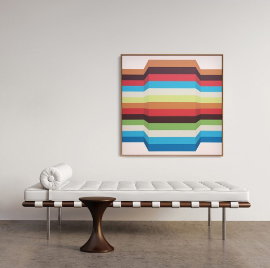 I think collectors are drawn for a few reasons. My op art paintings are quite different from what most other abstract artists are painting. They are very clean and graphic, and they tend to work well in both modern and traditional spaces. Another reason could be the bold and playful color combinations which I’m known for. And lastly, I always try to show collectors what a piece could look like in their home. Many people have trouble visualizing this, so I do my best to showcase my work in this way.
