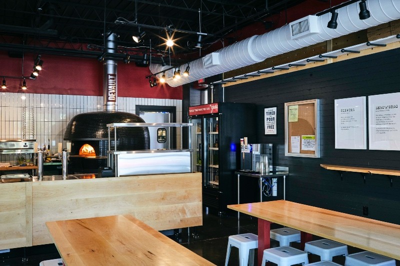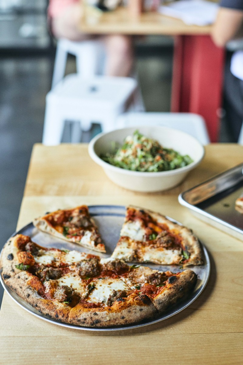 At the heart of Nashville’s Hillsboro Village neighborhood, ‘za offers a fast-casual experience. Guests begin by ordering from a menu of 12-inch pies at the counter, and then have the option to “takeout or hangout.”