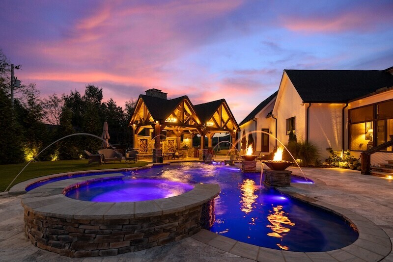 Lighting can transform your backyard from a place to swim and sunbathe into an enchanting evening escape. Imagine diving into the warm glow of a beautifully lit pool, the centerpiece of your poolside paradise. Custom lighting for your dream pool design creates a backyard oasis surrounded by soft, inviting light in the landscaping and adds warmth and drama with the flicker of unique fire features. Here’s how Peek Pools and Spas can bring your backyard oasis to life after dark with custom lighting that complements every design element.