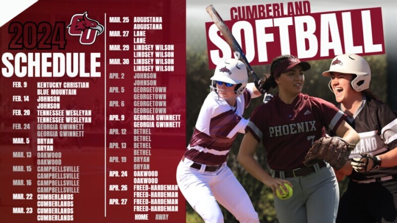 The season kicks off on February 9th as Cumberland hosts a double-header against Kentucky Christian University and Blue Mountain University from Mississippi. The team will face Johnson University on February 14th followed by a double-header against Tennessee Wesleyan University on February 20th