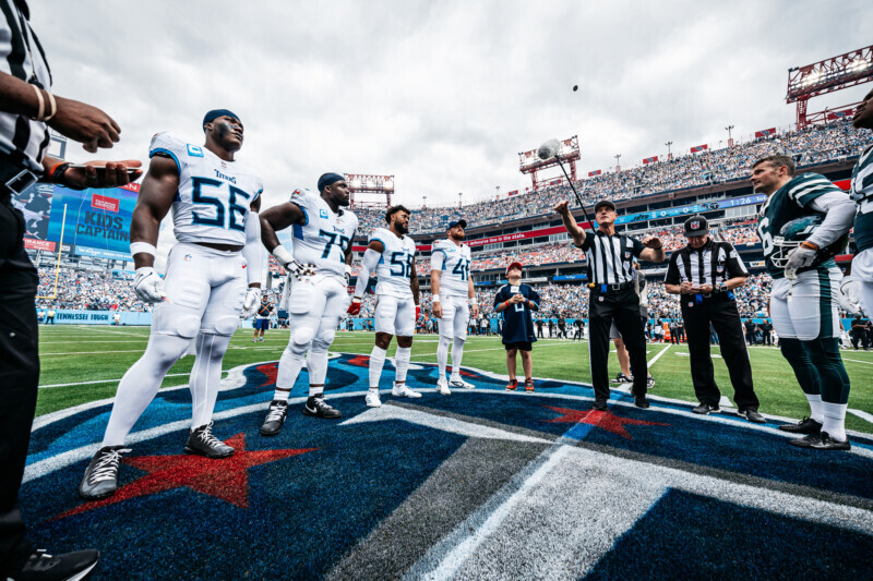 During last Sunday’s home game against the New York Jets, the 8-year-old joined the Titans’ captains at midfield for a pregame coin toss. The opportunity came from the Tennessee Titans Kids Captain contest, which gives kids between 6 and 12 years old four lower-bowl tickets to the game, a chance to participate in the pregame coin toss, a parking pass, a red Farm Bureau Insurance of Tennessee cap and an official Titans jersey.