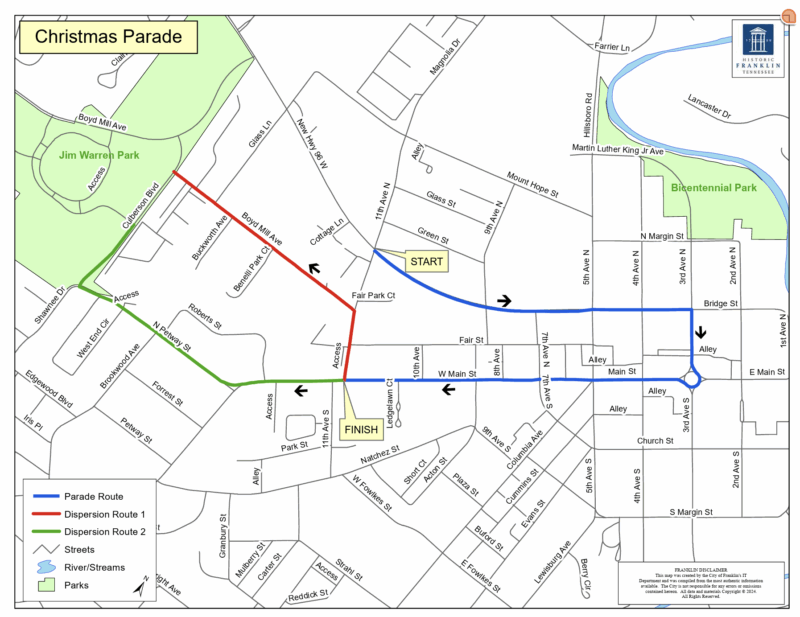 The streets will close promptly at noon. To ensure a spot to watch the parade, plan to arrive early to downtown Franklin and spend time shopping on Main Street to mark a few names off your list. We suggest to arrive around 11 am.