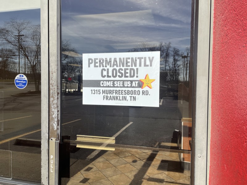 Hardee’s, on Columbia Ave in Franklin, has closed.