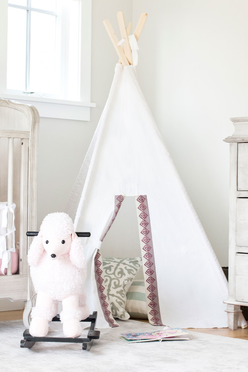 Whether your design is sophisticated chic or conservative, don’t forget to add a touch of fun and whimsy. Your idea of whimsy could be a teepee or a rocking poodle. Either would make a playful addition to any design theme.