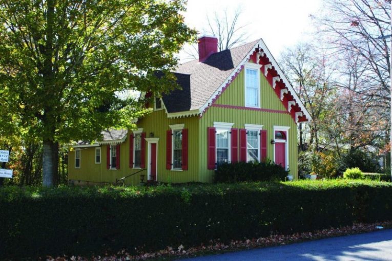 Known as the Ritter Morton House, or the Kissing House, it was built in 1870 by Peter and Elizabeth Ritter. The Carpenter-Gothic style home was later sold to Sara Odil. Odil was betrothed to an older gentleman, but later found out he had spurned her and married someone else.