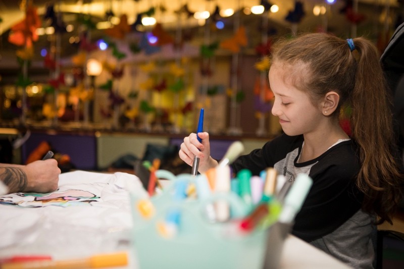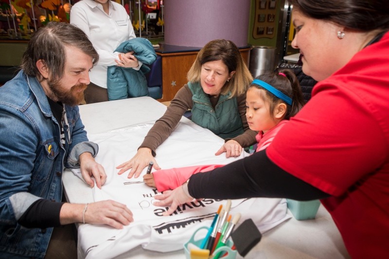 Take a look at patients and artist working together on lab coats below.