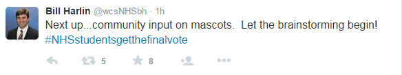 Now that the colors have been chosen, it’s time to pick a mascot, Tweets Principal Harlin.