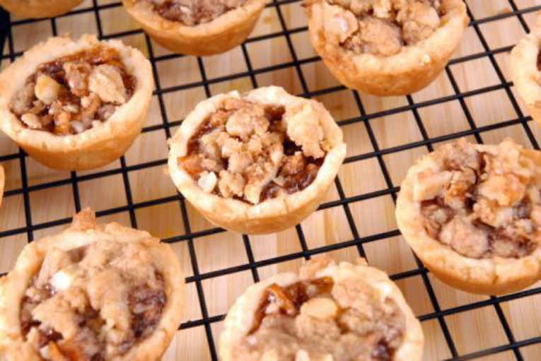 For topping: Combine flour, brown sugar and nuts in a small bowl. Cut cold butter into small pieces, add to flour mixture and rub together with fingers until mixture is crumbly. To assemble: Place about 1 tsp. of filling into each dough-lined muffin cup and sprinkle each with topping. Bake in a 325-degree oven for about 30 min. until pastry is golden. Remove from oven and cool in muffin tin for 5 min., then remove tarts from tin and cool completely on a baking rack before serving.