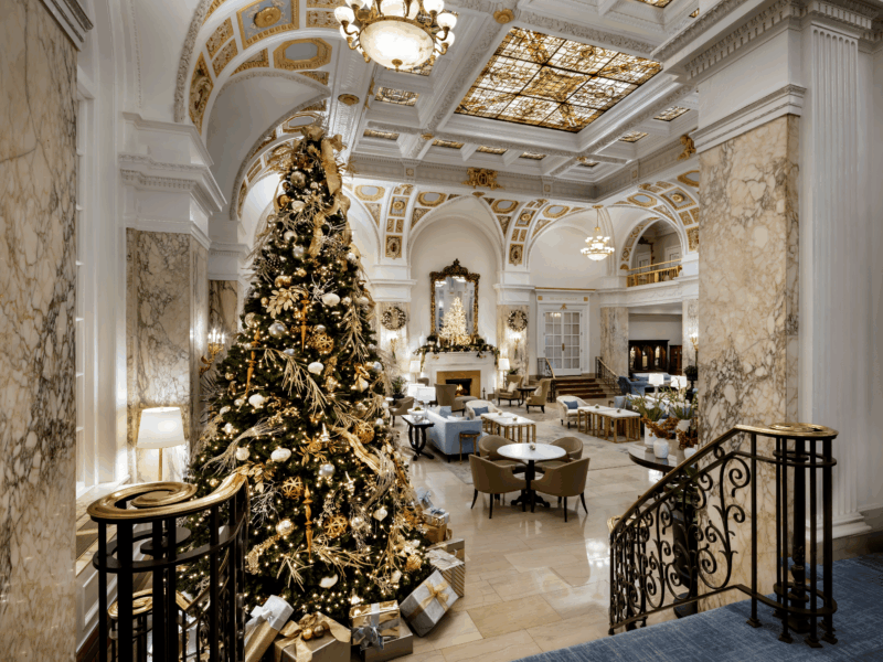 The Hermitage Hotel is where the storied landmark transforms each December with a 15-foot Christmas tree in the Grand Lobby, magnolia-wrapped banisters, glowing wreaths, and timeless décor that reflects the warmth of the season.