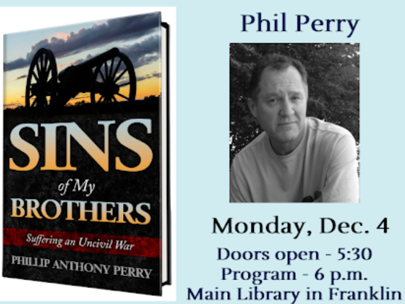 Local author Phillip Anthony Perry is launching his debut novel – a historical non-fiction novel set in April 1865. Sins of My Brothers: Suffering an Uncivil War tells the true story of greed, corruption, and incompetence at the close of the American Civil War.